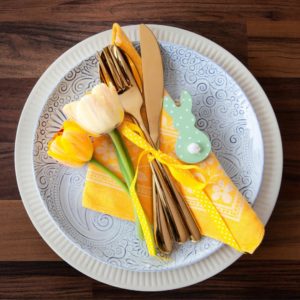 Nous sommes toujours plein de bonnes volontés pour enjoliver notre table. Cependant, comment faire ? Et bien cela est tout simple ! Un mini lapin en bois (brut ou peint) que l’on accroche à un ruban ou une cordelette et c’est fini ! Ce petit détail donne tout de suite le thème de notre repas. Aussi, n’hésitez pas à diversifier vos ronds de serviettes en remplaçant le lapin par une poule.